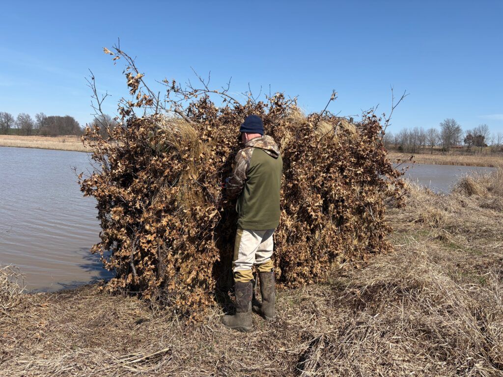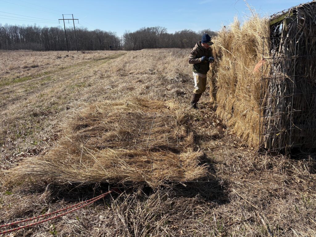 We recently developed a new method to cover our blinds with Rippy grass woven into cattle panels. After duck season they can be taken down, stored in a barn and re-used next fall.